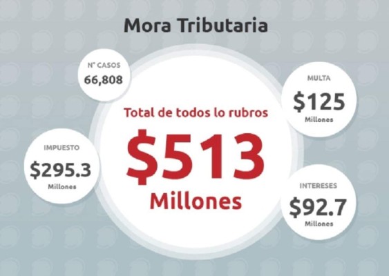 Las empresas que le deben impuestos al Ministerio de Hacienda (MH) son 66,808 y tienen que cancelar US$513 millones entre los tributos no pagados, las multas y los intereses generados por la mora.