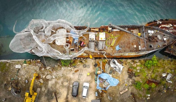 Cuando se sumerja en el Océano Atlántico, el Kodiak Queen --uno de los cinco barcos sobrevivientes del ataque a Pearl Harbor-- se convertirá oficialmente en BVI Art Reef, un ecosistema marino artificial y un sitio de buceo sobrenatural coronado por la escultura de un Kraken (criatura marina de la mitología escandinava descrita comúnmente como un pulpo gigante) de 80 pies de largo.