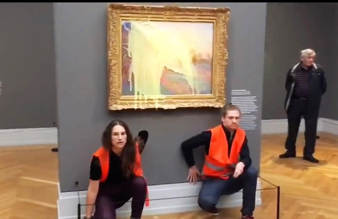 La obra, perteneciente a la serie Les Meules (Los Pajares) de Monet (1889-1891), fue rociada con una masa viscosa, según ha explicado la portavoz del museo, Carolin Stranz.