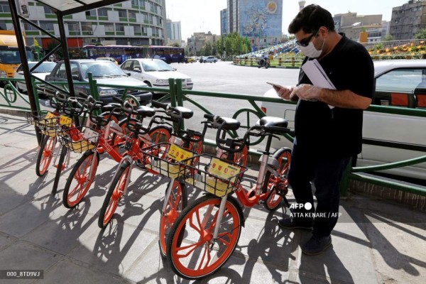 Mientras limpia el manillar con un trapo impregnado de una solución alcohólica, este representante comercial afirma preferir moverse en bicicleta que tener que tomar un taxi, sobre todo con la pandemia de covid-19 que tan fuerte golpeó a Irán, pero solo para trayectos cortos.