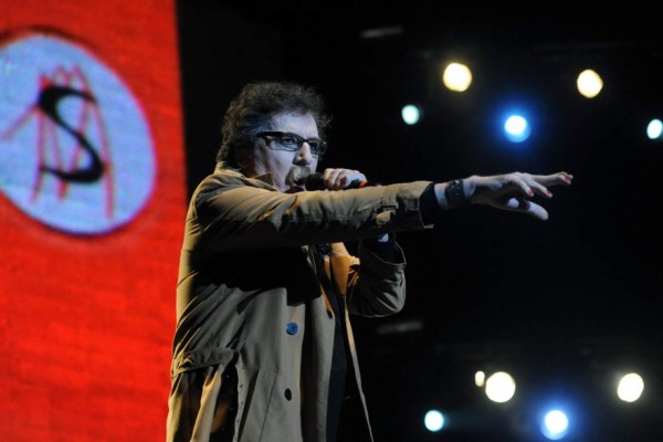 Vestido con un traje blanco y en el brazo una cinta con su lema Say No More (SNM), y un sombrero en la cabeza, García cantó con su voz cascada sus hits 'Cerca de la Revolución', 'Promesas sobre el bidet', 'Raros peinados nuevos' y 'Demoliendo hoteles'.