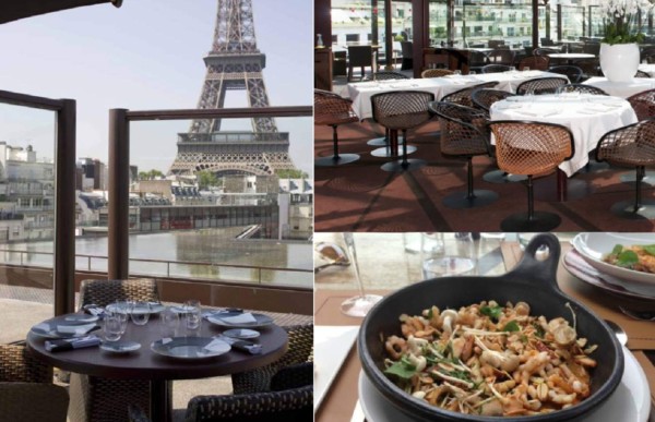 Su restaurante Les Ombres ocupa el corazón del jardín, en la terraza, lo que permite gozar de una vista panorámica única de París a la sombra de la torre Eiffel. Pero como no sólo de paisaje y arte vive el hombre, el chef Jean-François Oyon diseñó una propuesta gastronómica acorde al ambiente cultural del museo: cocina de fusión elaborada con productos frescos y de temporada que no pierden su identidad. La posibilidad de una cena o almuerzo con un toque romántico y cinematográfico inolvidable.