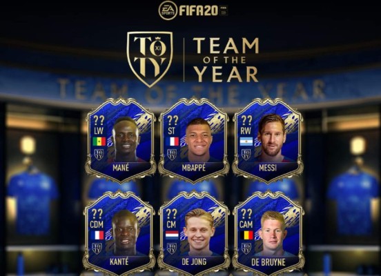 Los once jugadores seleccionados por la comunidad de EA Sports por su rendimiento en el campo durante 2019 han sido el portero brasileño Alisson Becker; los defensas Andrew Robertson, Virgil van Dijk, Matthijs de Ligt, Trent Alexander-Arnold; los centrocampistas Frenkie de Jong, Kevin de Bruyne y N'Golo Kanté; y los delanteros Kylian Mbappé, Sadio Mané y Lionel Messi.