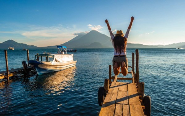 Panajachel ofrece una vista espectacular de los volcanes de San Pedro, Tolimán y Atitlán.