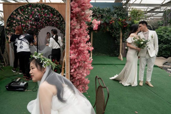 El sector de las bodas está en pleno auge en China, con un volumen de negocio previsto de 2,270 billones de yuanes (290.000 millones de euros, 321.000 millones de dólares) de aquí al final del año, según el gabinete ASKCI.