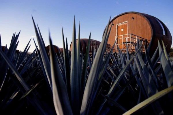 El hotel, que opera desde hace 18 meses, está conformado por 34 gigantescos toneles de unos 7,2 metros de largo por 4,8 de diámetro emplazados en medio de un campo de más de dos hectáreas donde crecen árboles de agave, planta nativa mexicana que es la materia prima de la bebida.