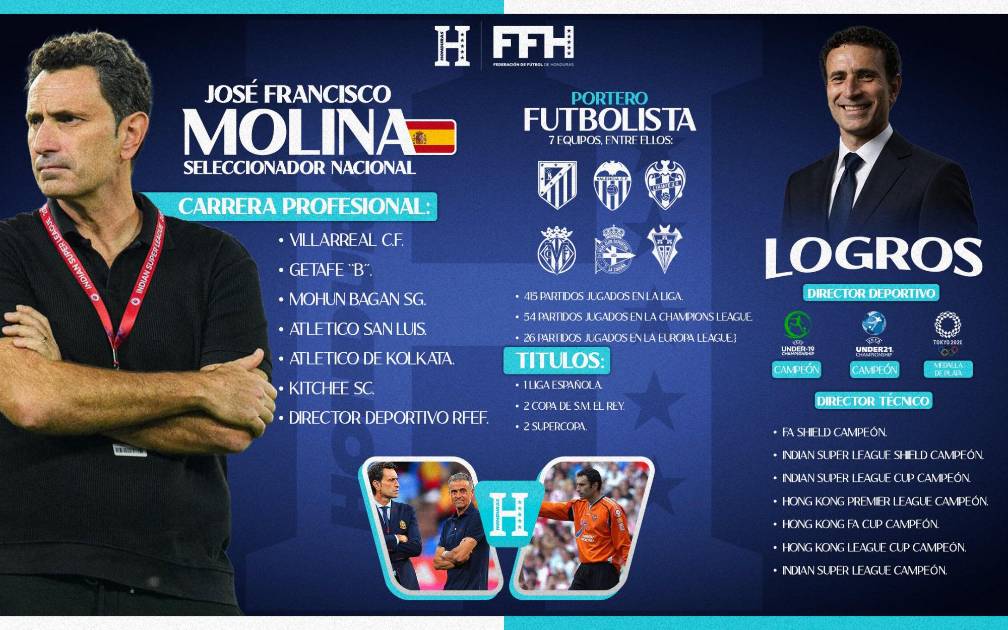 Molina, de 55 años y natural de Valencia, integró la selección de su país en el Mundial de Francia 98 y en la Eurocopa de Países Bajos de 2000, y ha sido elegido por la FFH para que también sea el director deportivo de las selecciones hondureñas, puesto que ya ocupó en la Real Federación Española entre 2018 y 2022.