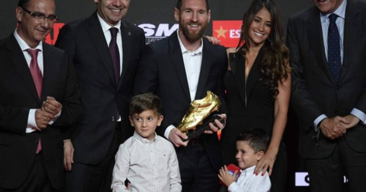 El capitán azulgrana recibió el trofeo dorado de manos de sus dos hijos Thiago y Mateo, presentes en el acto junto a la mujer del argentino, Antonella Roccuzzo, y varios de sus compañeros del Barça.