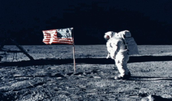 Al regreso a la Tierra, fue montada sobre un soporte de madera antes de ser ofrecida a Neil Armstrong, el primer hombre en pisar la Luna.