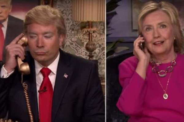 El conductor y humorista se caracterizó como Donald Trump y entabló un irreverente diálogo con la ex secretaria de Estado norteamericana y actual pre-candidata presidencial del Partido Demócrata.