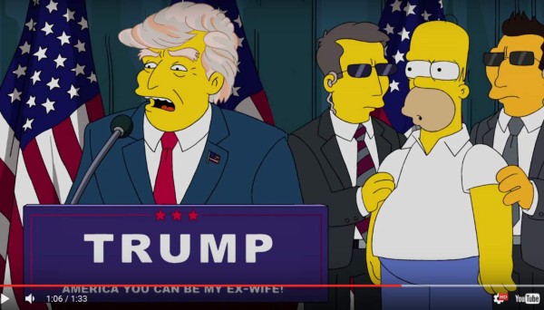 En julio de 2015, la serie animada ya se había burlado del magnate y lo retrató en un corto. En el episodio llamado Trumptastic Voyage (Viaje Trumptástico), se puede ver a Homero Simpson participando en el anuncio presidencial de Trump, quien busca ser el candidato del Partido Republicano a la Casa Blanca en 2016.