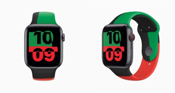 Uno de esos dispositivos es el Apple Watch Series 6 Black Unity Collection, reloj que cuenta con un diseño negro, verde y rojo, colores que simbolizan la bandera panafricana y saldrá a la venta el Mes de la Historia Negra, como forma apoyar a la comunidad negra y para conmemorar numerosos actos históricos.