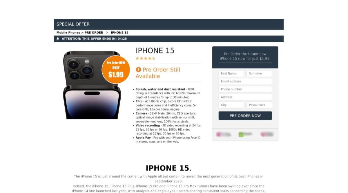 En una maniobra engañosa prevalente, los estafadores atraen a los usuarios con la posibilidad de comprar el iPhone 15 antes de su lanzamiento oficial.