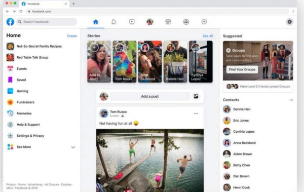 El nuevo diseño luce el blanco por encima del azul corporativo de Facebook, destaca todavía más que hasta ahora las historias compartidas (breves videos efímeros que los usuarios cuelgan en la red al estilo de Instagram) y resalta también los grupos, tanto aquellos a los que el internauta ya pertenece como los sugeridos.