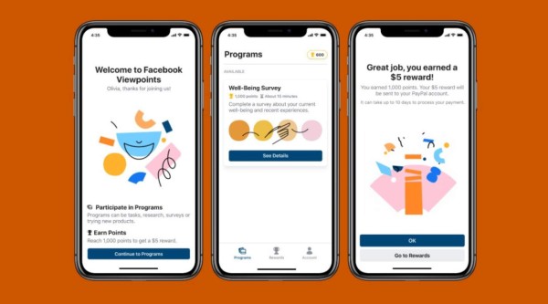 Facebook lanzó el lunes Viewpoints, una aplicación que propone remunerar a los usuarios que acepten participar en misiones, encuestas y estudios.