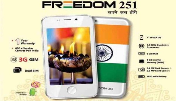 La compañía explica que el Freedom 251, cuenta con una pantalla de 4 pulgadas, un procesador a 1.3 GHz, 8 GB de memoria interna ampliables a través de MicroSD a 32 GB una cámara posterior de 3,2 megapíxeles con enfoque automático y otra frontal de 0,3 megapíxeles y una batería de batería de 1.450 mAh