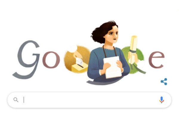 El Doodle de Google del 21 de noviembre de 2019 es dedicado a Matilde Hidalgo de Procel, ecuatoriana, que se convirtió en 1924 en la primera mujer en votar en América Latina.