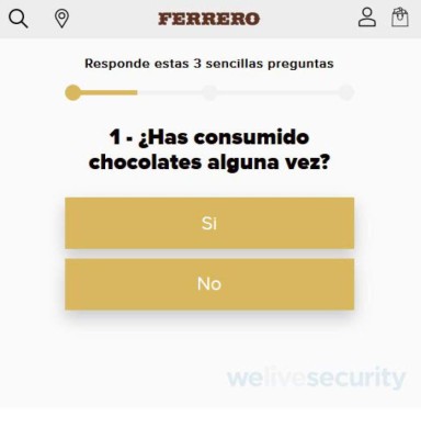 "Lo primero que debería llamar la atención de quienes reciben este mensaje es que no se trata de una dirección web que pertenezca a la marca. Si bien utiliza su nombre como parte del subdominio, la parte de la URL que dice "ferrero-rocher" es solo una página creada en el dominio regalo.XXX. El objetivo claramente es hacer más creíble el mensaje a partir del juego de palabras", menciona Luis Lubeck, Especialista en Seguridad Informática de ESET Latinoamérica.