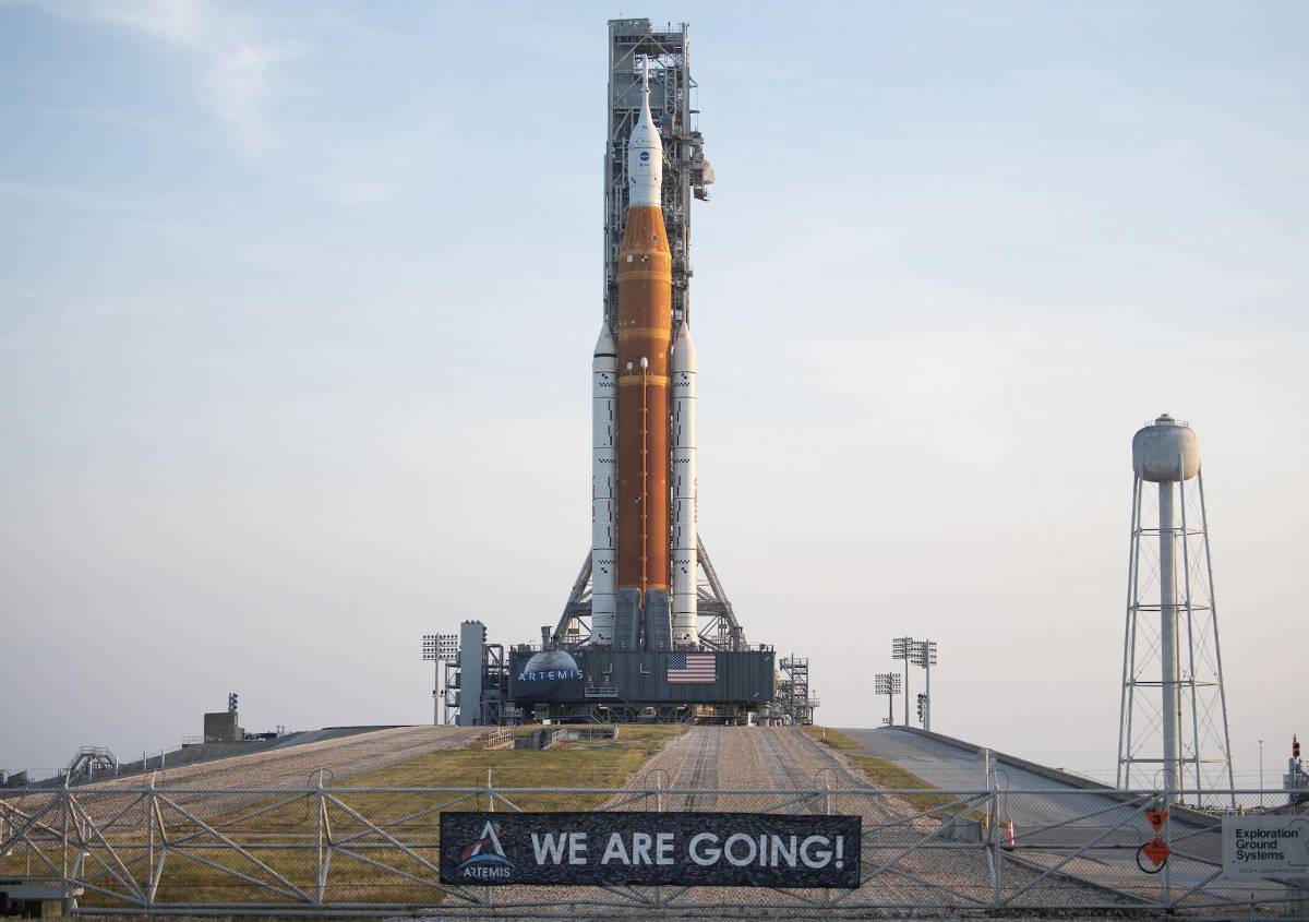 El cohete, llamado SLS (por Space Launch System), ha estado en desarrollo durante más de una década y se convertirá en el más poderoso del mundo cuando despegue. Mide 98 metros de altura.