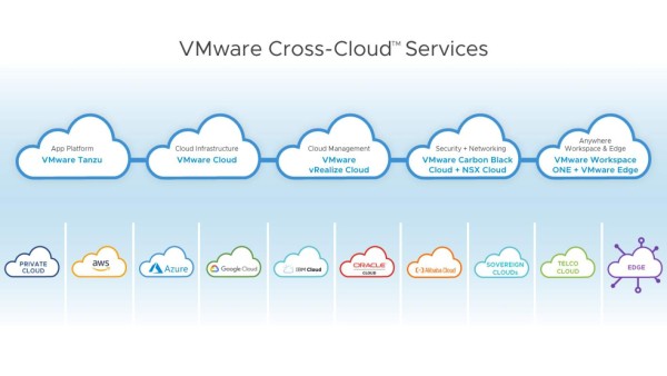 Para ayudar a los clientes a navegar por la era de las nubes múltiples, los servicios de VMware Cross-Cloud ofrecen tres ventajas claves: un proceso acelerado a la nube, rentabilidad, flexibilidad y control en cualquier nube. Los servicios de VMware Cross-Cloud amplían las funciones del portafolio de productos de VMware para un mundo de nubes múltiples y permitirá a los clientes elegir los servicios necesarios en la nube deseada para satisfacer las demandas comerciales en constante evolución. Los servicios de VMware Cross-Cloud se componen de cinco componentes básicos:Una plataforma de vanguardia para crear e implementar aplicaciones nativas de la nube;